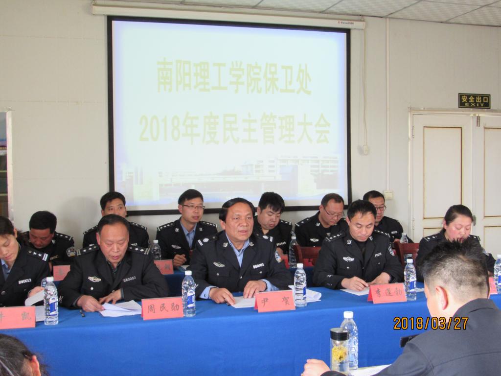 3月27日下午,保卫处召开了2018年度民主管理大会,保卫处分工会全体会员与来自南阳市公安局、南阳市保安公司等单位的特邀代表共计35人参加了会议。