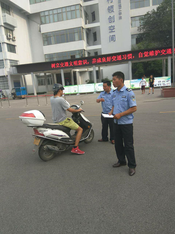 重点查处超速行驶、酒后驾驶、无证驾驶、乱停乱放、无牌照无驾驶证无合格证的助力摩托车、大噪音超速摩托车等违规行为。止6月20日,进入校园的机动车辆达64万辆次,查处各类超速轿车66人辆次、摩托车78辆次、助力车32辆次、电动车35辆次,查处无牌照、无驶证、无合格证的助力摩托车、大噪音摩托车8辆,查处超载电动车13人次;锁扣助理车1辆。