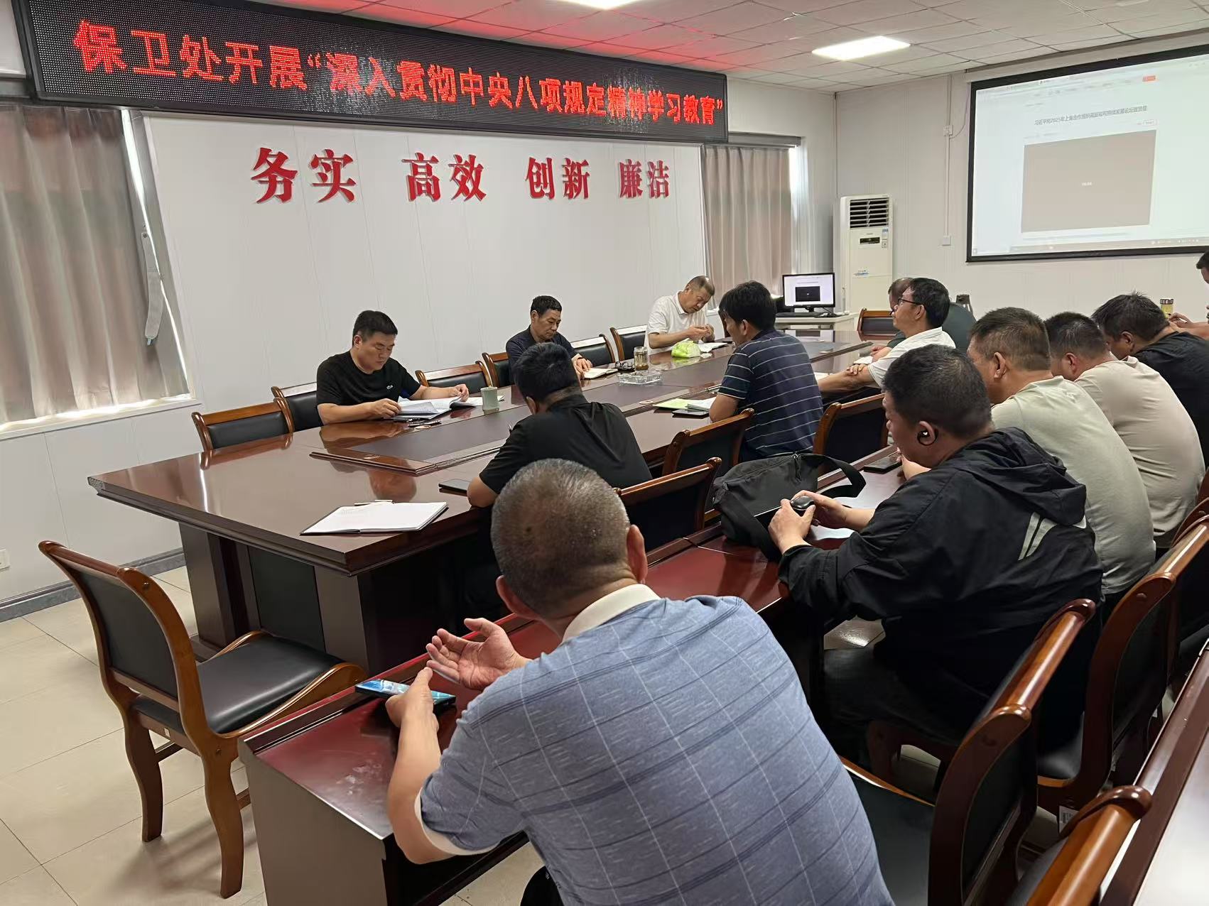 4月18日下午,保卫处党支部召开深入贯彻中央八项规定教育动员会,党支部书记何云亭作动员讲话,全体党员参加会议。