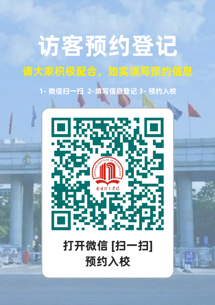 学校新的访客预约系统已调试完毕,正式启用,外来人员可在学校大门口通过扫描二维码预约或在南阳理工学院官网保卫处主页上扫码预约,经批准后刷脸入校,现将预约和审批相关事项通知如下: