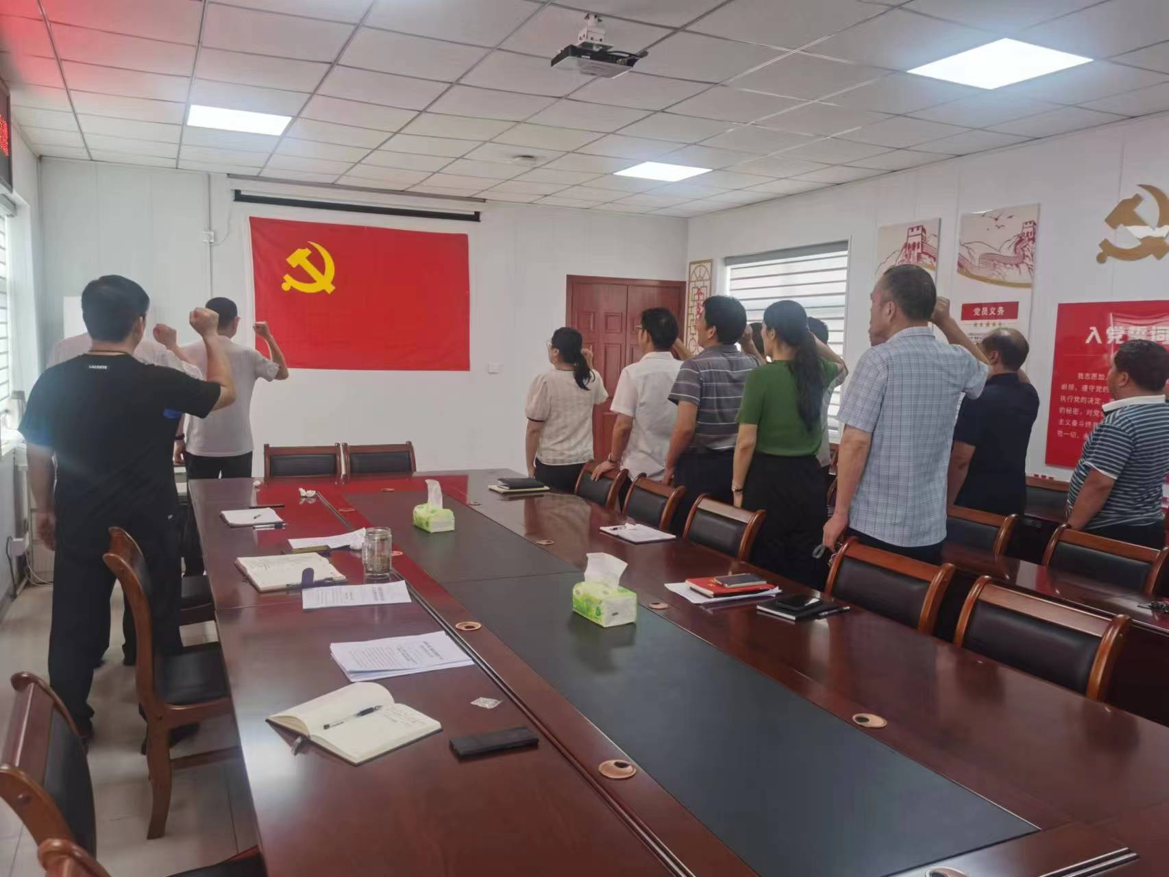 全体党员在党支部书记何云亭带领下,面对党旗庄严宣誓,重温入党誓词。坚定有力的誓言久久回荡,在场的每一位同志又接受了一次深刻的党性教育和灵魂洗礼。