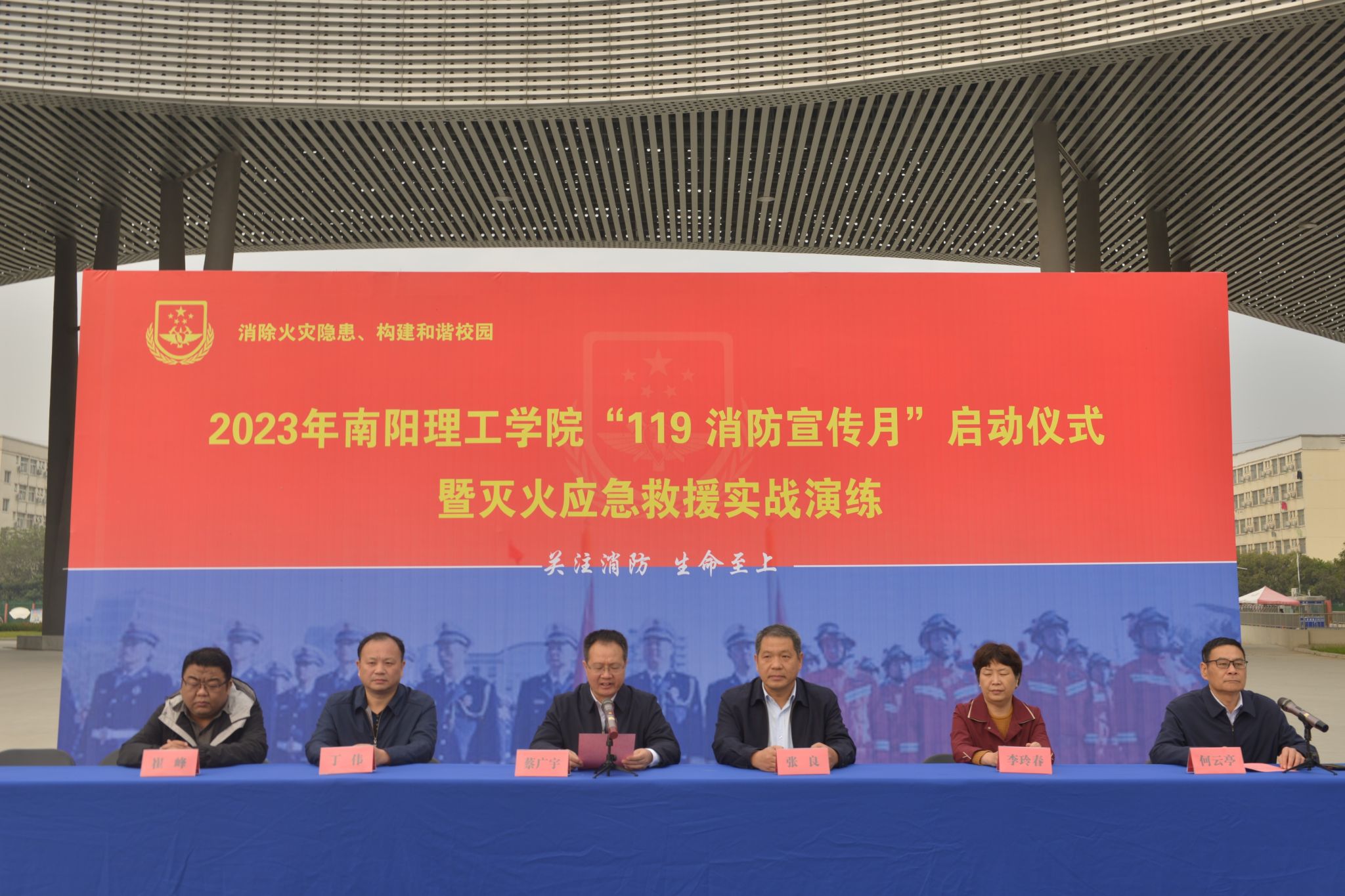 蔡广宇副校长在活动启动仪式中强调,消防安全事关社会大局稳定,事关南阳理工学院发展全局,事关师生员工生命财产安全,任务艰巨,责任重大。我们要以更高的标准、更大的力度和更严的措施,切实抓好消防安全工作,扎实开展消防宣传月活动,积极开展消防安全教育,全面提升全校师生的消防法律法规意识、消防安全常识和火灾防范自救能力,为建设平安和谐校园,为争创省域副中心城市、平安南阳、幸福南阳、美丽南阳作出新的更大的贡献!